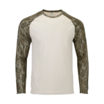 Paragon Adult Jackson Sleeve Print Long Sleeve T-shirt. Here's a versatile combination.  The most popular Mossy Oak® camo wood and grass patterns on the sleeve and neck of this ParagonXP performance tee!  Solid dyed front and back body panels make for a blank canvas to decorate and co brand your logo and designs.  Make your connection to nature in comfort with moisture wicking and anti-microbial features, keeping you cool and dry.  Fabric is wrinkle resistant and gives you a UPF50+ sun protection rating.  ParagonXP tear away label, hemmed sleeves and bottom. 3.5 oz